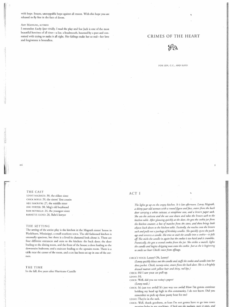 Crimes Of The Heart Script Pdf American Literature Performing Arts